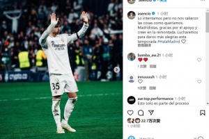 劳尔-阿森西奥社媒:我们努力了但事与愿违,感谢球迷的支持